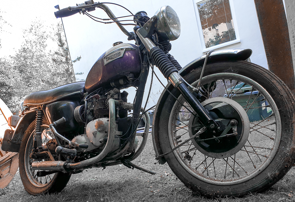 Triumph Daytona T100R (1974) and Moto Guzzi V7 (2022). Mirror mirror on the wall...
