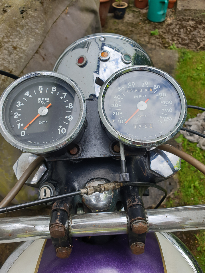 Triumph Daytona T100R (1974) and Moto Guzzi V7 (2022). Mirror mirror on the wall...