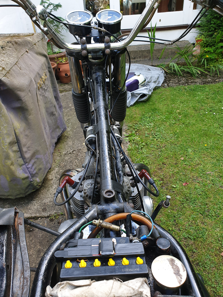Triumph Daytona T100R (1974) and Moto Guzzi V7 (2022). Mirror mirror on the wall...