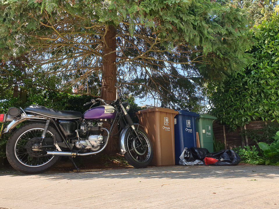 Triumph Daytona T100R (1974) and Moto Guzzi V7 (2022). Mirror mirror on the wall...
