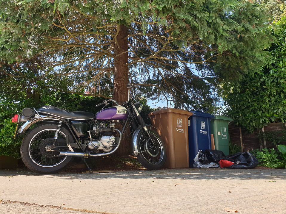 Triumph Daytona T100R (1974) and Moto Guzzi V7 (2022). Mirror mirror on the wall...