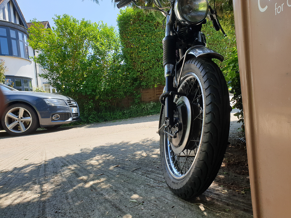 Triumph Daytona T100R (1974) and Moto Guzzi V7 (2022). Mirror mirror on the wall...