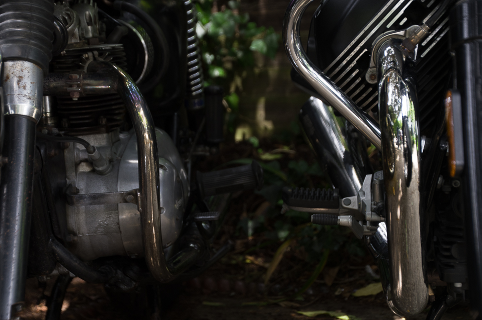 Triumph Daytona T100R (1974) and Moto Guzzi V7 (2022). Mirror mirror on the wall...