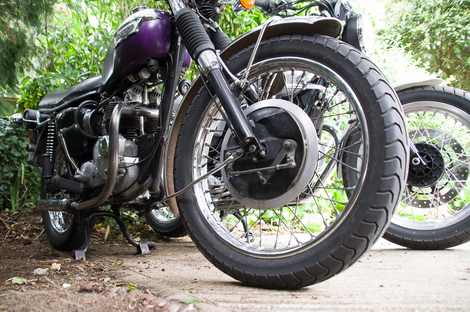 Triumph Daytona T100R (1974) and Moto Guzzi V7 (2022). Mirror mirror on the wall...