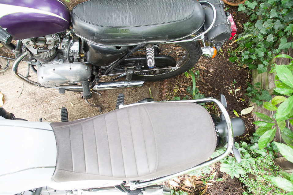 Triumph Daytona T100R (1974) and Moto Guzzi V7 (2022). Mirror mirror on the wall...