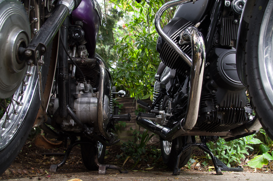 Triumph Daytona T100R (1974) and Moto Guzzi V7 (2022). Mirror mirror on the wall...