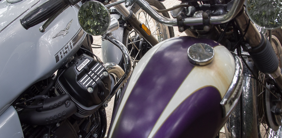 Triumph Daytona T100R (1974) and Moto Guzzi V7 (2022). Mirror mirror on the wall...
