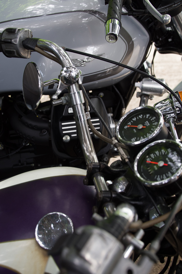 Triumph Daytona T100R (1974) and Moto Guzzi V7 (2022). Mirror mirror on the wall...
