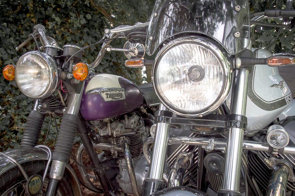 Triumph Daytona T100R (1974) and Moto Guzzi V7 (2022). Mirror mirror on the wall...