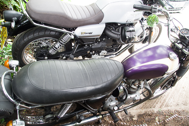 Triumph Daytona T100R (1974) and Moto Guzzi V7 (2022). Mirror mirror on the wall...